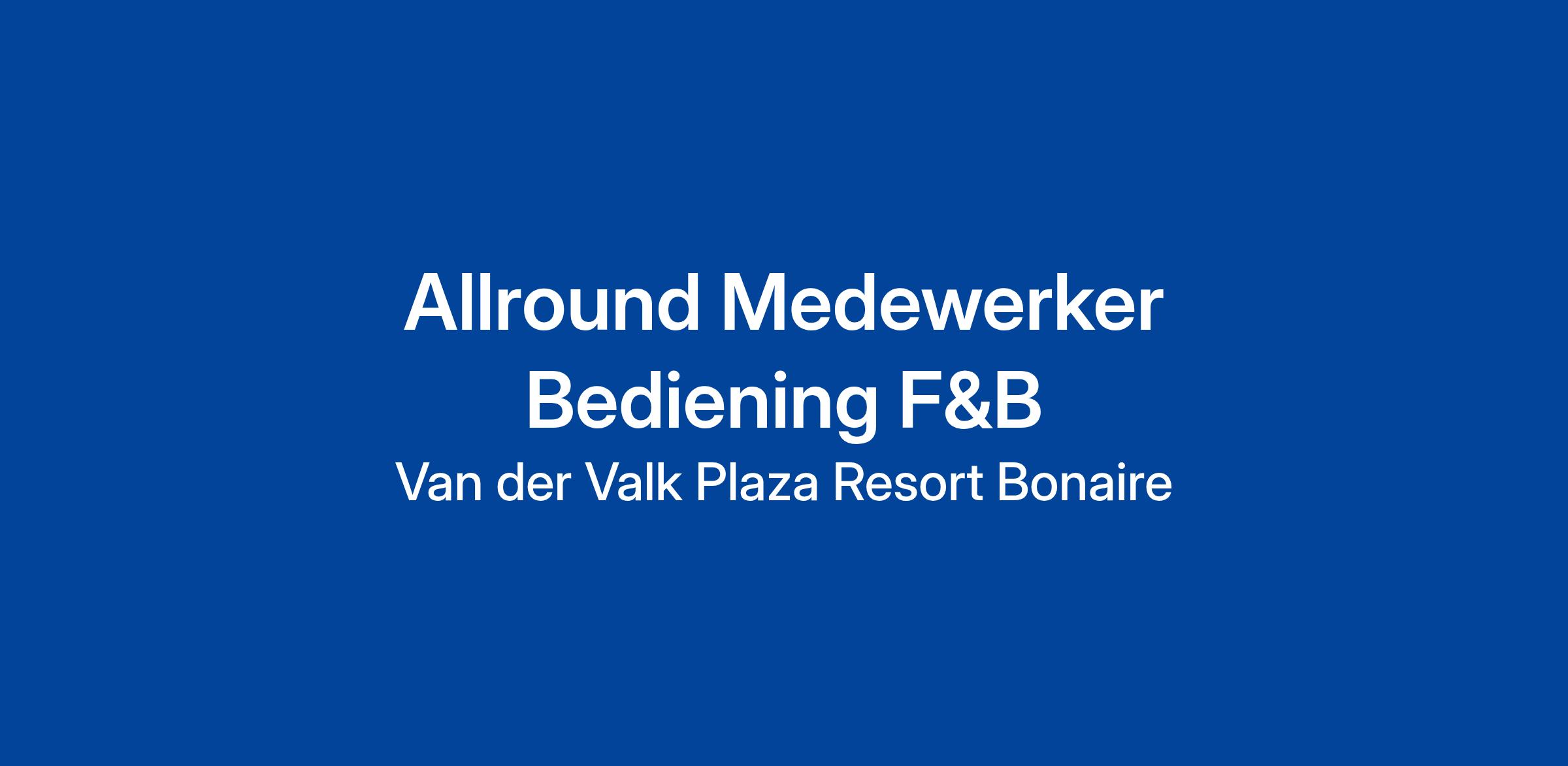 Werken bij Van der Valk Plaza Resort Bonaire betekent de ultieme mix ervaren van hard werken en samen met de leukste collega’s volop genieten van alles wat dit zonovergoten eiland te bieden heeft! Het ondernemende karakter van de familie Van der Valk zie je ook terug in de medewerkers. Met ruime groeimogelijkheden en een krachtig team dat zich inzet om onze gasten een fantastische ervaring te bieden, is werken bij ons nooit saai.